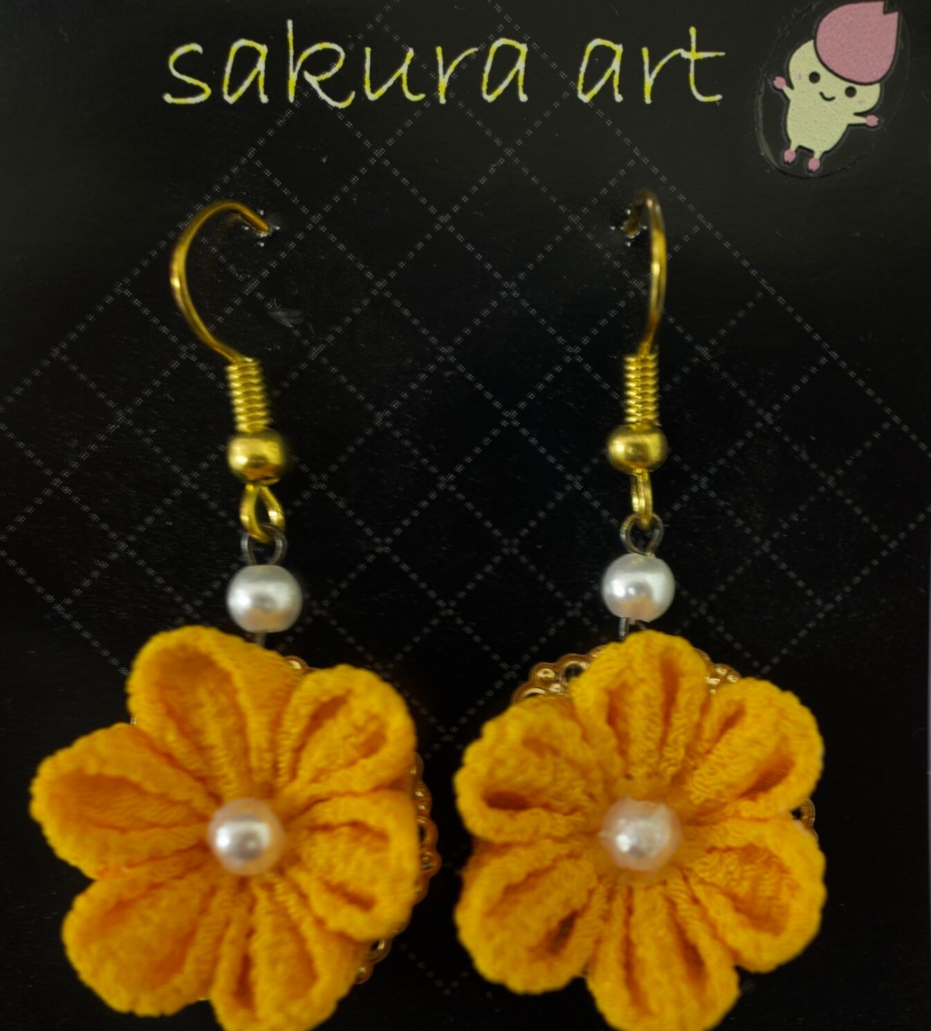 つまみ細工(ピアス)「元気いっぱい」
